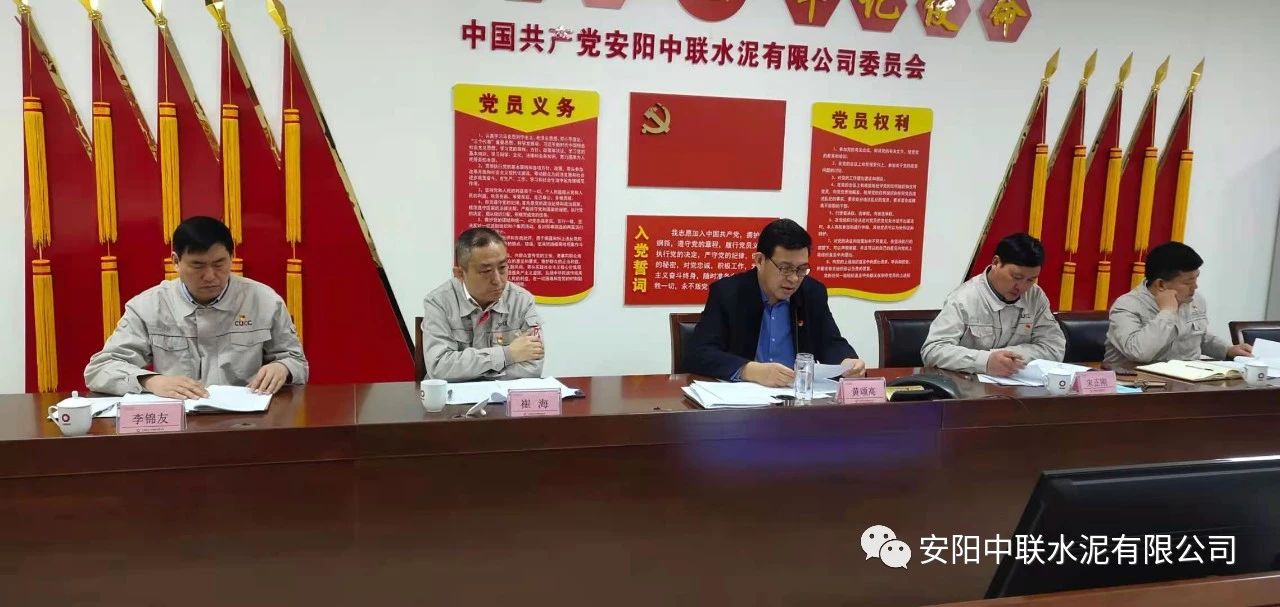 按照中國聯(lián)合水泥黨委關于認真開好2020年度民主生活會通知要求,2月24日上午,安陽中聯(lián)2020年度黨員領導班子民主生活會在公司黨員活動室召開。中國建材股份黨委常委、執(zhí)行董事、副總裁,中國聯(lián)合水泥黨委書記、董事長崔星太通過視頻連線督導會議并作點評講話。中國聯(lián)合水泥黨群工作部主任侯萍、紀檢監(jiān)察室副主任董治及安陽中聯(lián)黨委委員、領導班子成員參加會議。安陽中聯(lián)黨委書記、總經(jīng)理黃頌高主持會議。
